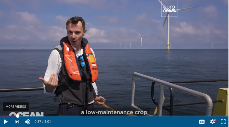 In collaboration with Simply Blue Group, Van Oord, Algaia, and Amazon, we opened the world’s first commercial-scale seaweed farm within the offshore wind farm ‘Hollandse Kust Zuid’ (HKZ), located about 18 kilometres off the coast of Scheveningen in the North Sea. North Sea Farm #1 initiated by North Sea Farmers with funding from Amazon’s Right Now Climate Fund, is a floating farm located in the open space between wind turbines where seaweed production can be tested and improved. In parallel, scientific research aims to validate the carbon sequestration potential of seaweed farms and measure biodiversity impacts.