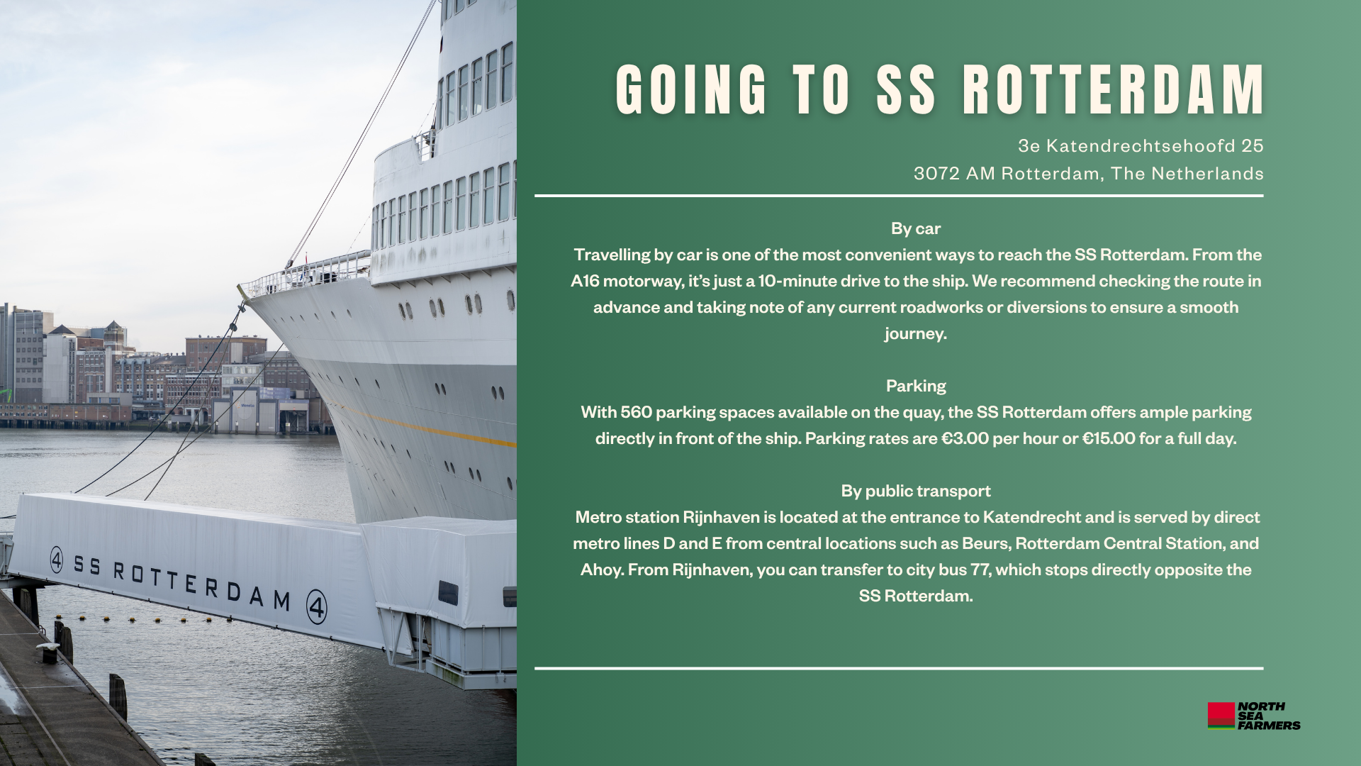 This year, North Sea Seaweed 25 welcomes you aboard the historic SS Rotterdam, the former flagship of the Holland America Line. The ship is based in the Port of Rotterdam and offers a unique blend of maritime heritage and modern facilities. It's the perfect place to get fresh ideas and make meaningful connections within the Seaweed community.