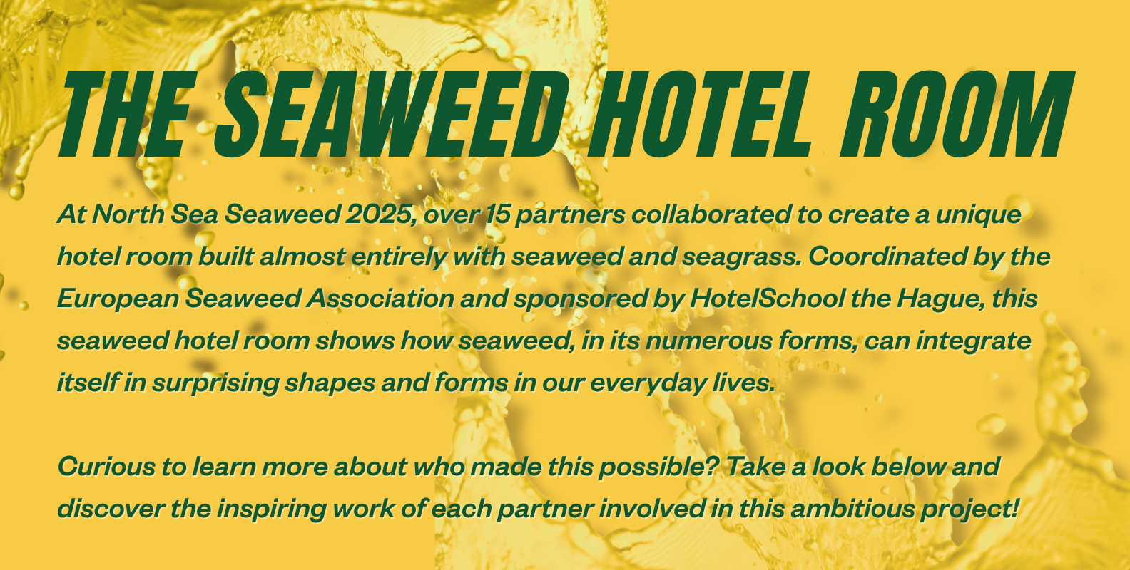 This Seaweed Hotel Room would not have been possible without the sponsoring of the Hotel School the Hague! As a Hospitality University, the Hotelschool is actively invested in sustainable innovation in hospitality, with their yearly Sustainability Hospitality Challenge Initiative launched in 2014 where sustainability is the central theme. The programs offered by this university drive business practices that have a positive impact on our society and planet.