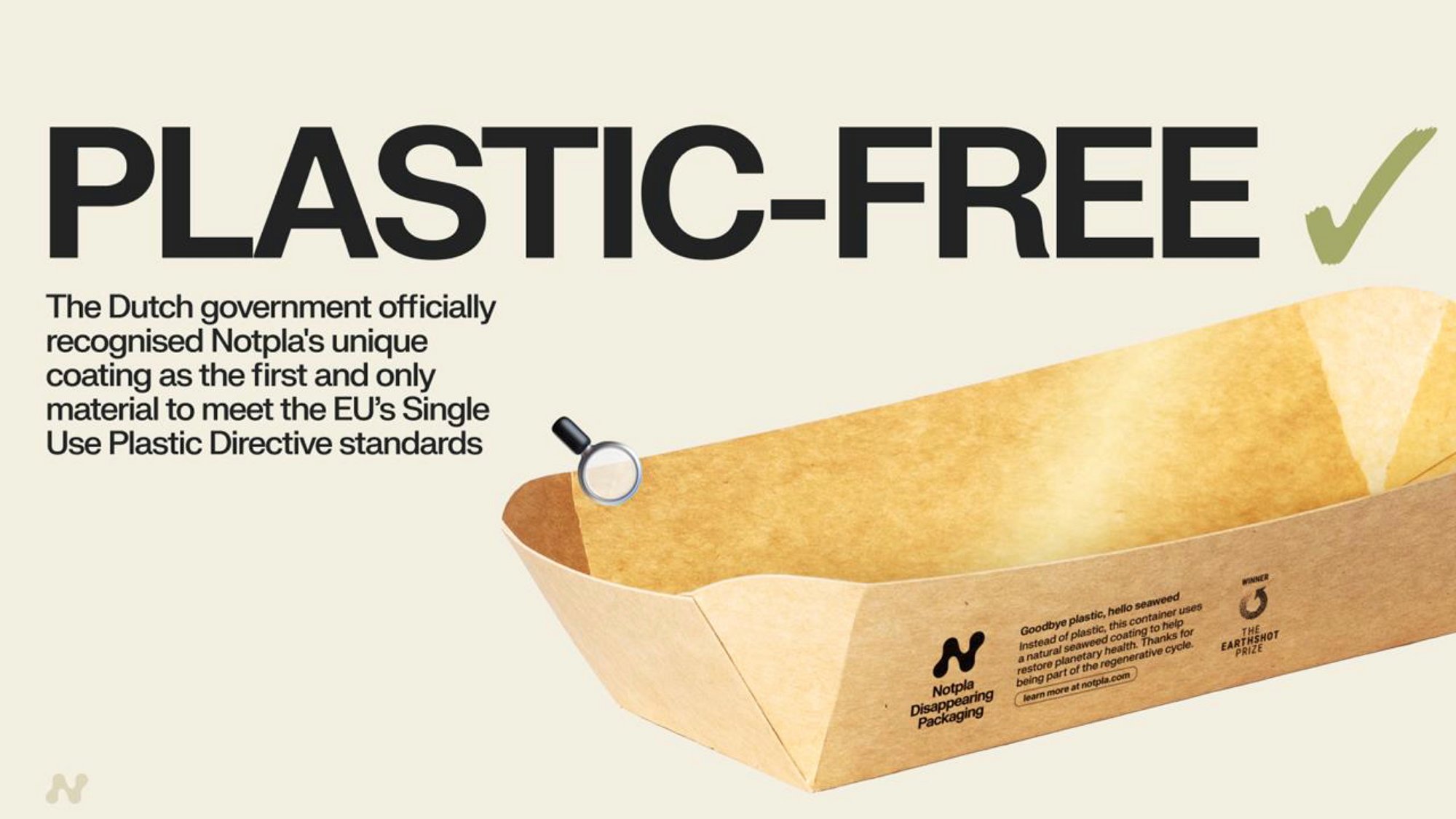 While many paper based food containers still rely on hidden plastic layers, this solution removes plastic entirely. The seaweed coating provides the necessary barrier properties without compromising recyclability or adding persistent waste to the environment. The result is packaging that is both functional and genuinely plastic free, as confirmed by the Dutch Human Environment and Transport Inspectorate.